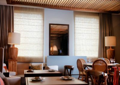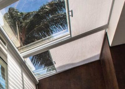 Seu jardim interno ou outro ambiente com cobertura de vidro ficará mais aconchegante com nossas persianas de teto – skywindow, seja no modelo romana, rollo, plissada ou celular. Persiana Romana: elegância e charme para os ambientes.