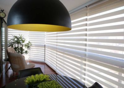A linha translúcida traz o aconchego e o charme na composição de ambientes, vestindo as janelas e controlando a incidência da luz com classe e elegância. Persiana Shadow: ambiências diversas com a alternância entre faixas translúcidas e opacas.